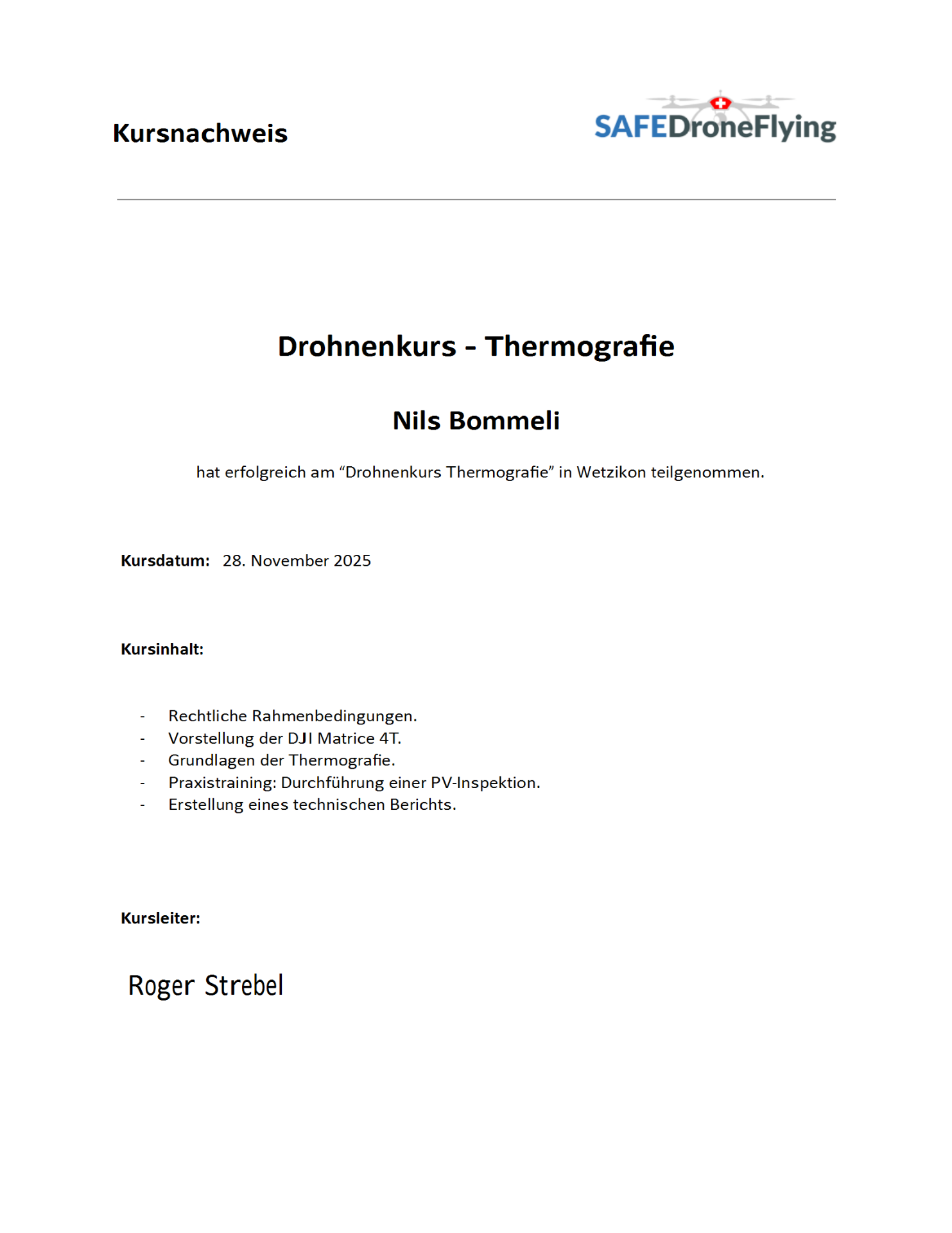 Sie erhalten einen PDF-Bericht mit allfällig markierten Auffälligkeiten, Temperaturauswertung und Handlungsempfehlungen – spätestens 48 Stunden nach dem Flug.